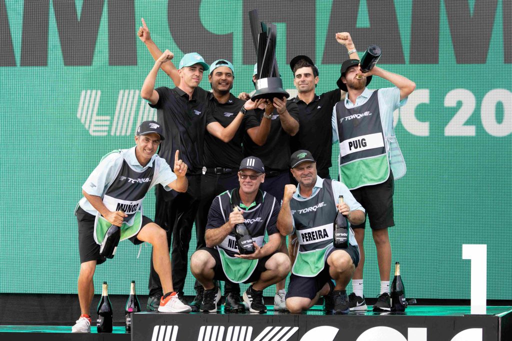 Torque GC, el equipo de los chilenos Joaquín Niemann, el capitán, y Mito Pereira, celebró su segundo título por equipos de la temporada, en la edición en Washington D.C. de la LIV Golf.